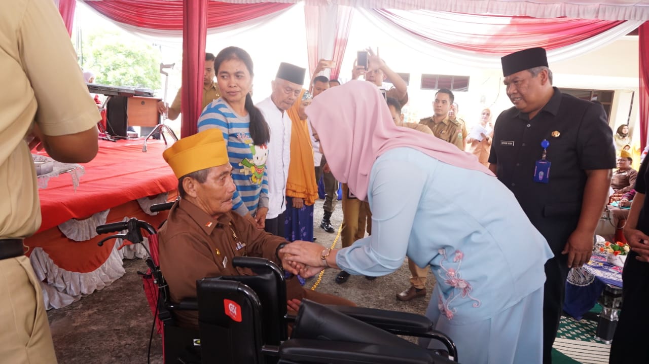 Pada kegiatan tersebut Ketua Tim Penggerak PKK Provinsi Sumsel Hj Febrita Lustia Deru menyerahkan bantuan yang sebagian besar diterima oleh masyarakat kurang mampu terdiri atas kursi roda sebanyak 20 unit, bantuan alat dengar, bantuan tongkat ketiak (kruck ketiak) dan tongkat tripot STIK (tongkat kaki 3) kemudian pemberian sembako bagi warga yang kurang mampu sebanyak 200 paket.