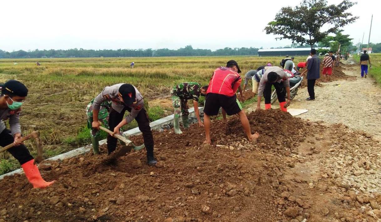 PEKALONGAN, Newshanter.com – Senin (06/04/2020) pagi itu, suasana di lokasi pembangunan talud di Dukuh Jlubang, Desa Pantirejo, Kecamatan Kesesi, Kabupaten Pekalongan, Jawa Tengah, agak lain dari hari-hari sebelumnya. Tampak sejumlah TNI anggota Satgas TMMD, kawula muda dan unsur kepolisian saling berpadu menyempurnakan bangunan talud yang merupakan salah satu sasaran pokok TMMD Reguler ke-107 Kodim 0710/Pekalongan.