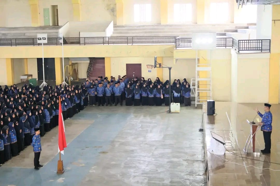Apel yang dipimpin langsung Oleh Bupati Aceh Tamiang, Irjen Pol (P). Drs. Armia Pahmi, MH berlangsung Aman Dan Tertib di Tamiang Sport Centre (GOR).