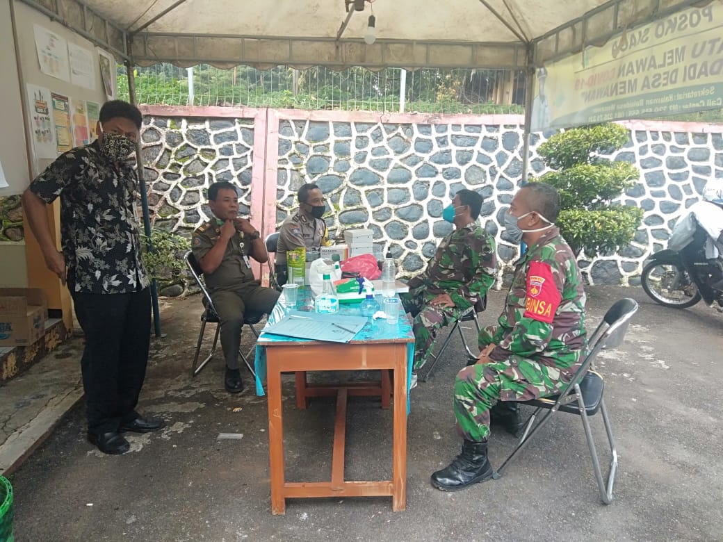 komsos yang dikemas sambil duduk ngobrol santai, Di Posko Serka Fitron dalam perbincangan hangat tersebut mengatakan, “Virus corona pada mulanya merupakan virus yang menginfeksi antar hewan, namun virus ini telah berevolusi dan menyebar dapat menginfeksi manusia dengan gejala awal kelelahan, batuk, pilek, demam hingga sesak napas”, Terang Serka Fitron