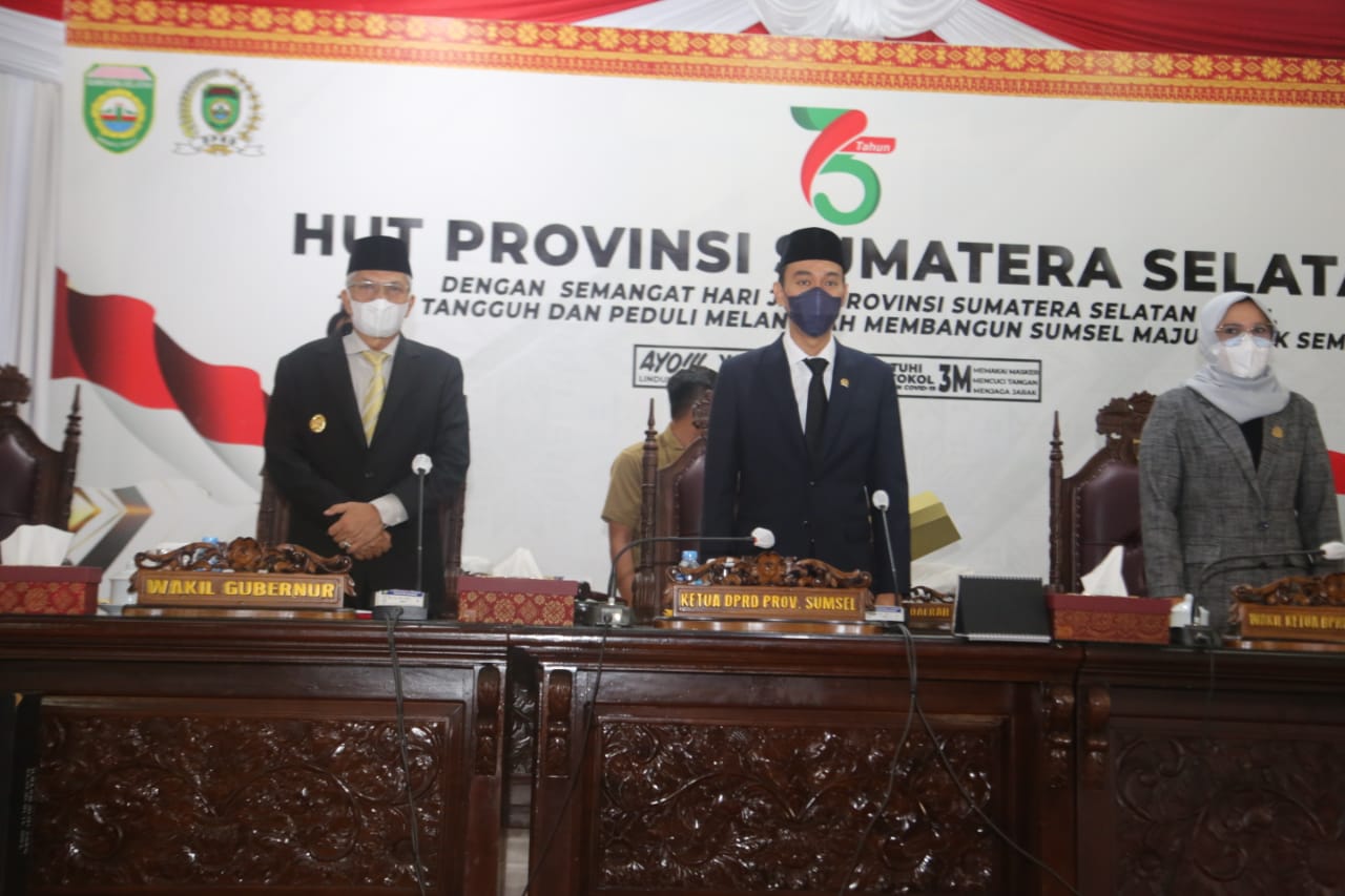 Palembang,newshanter.com – Wakil Gubernur Sumatera Selatan (Sumsel) Ir. H Mawardi Yahya menghadiri Rapat Paripurna XXX (30) DPRD Provinsi Sumsel dengan agenda Pemandangan Umum Fraksi-fraksi DPRD Provinsi Sumsel atas Penjelasan Gubernur Sumsel terhadap sembilan Raperda Provinsi Sumsel bertempat di Ruang Rapat Paripurna DPRD Sumsel, Senin (17/5/2021).