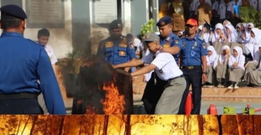 Setelah upacara bendera selesai,kegiatan dilanjutkan pemberian sosialisasi pencegahan kebakaran yang berasal dari GAS yang bocor, bagi siswa dan guru, Dengan adanya sosialisasi ini, diharapkan menambah keberanian siswa dan guru dalam menghadapi bahaya kebakaran sebelum apinya menjadi besar sementara alat-alat yang di gunakan berupa karung Goni dan Alat Pemadam Api Ringan (APAR).( A/M)