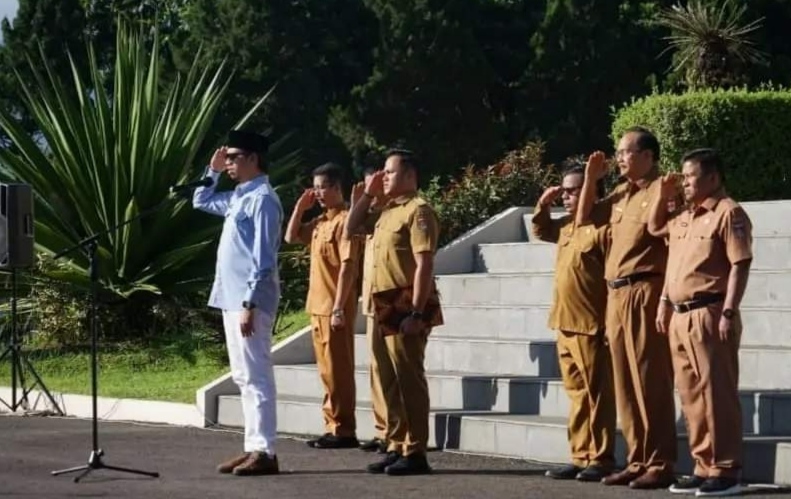 Apel gabungan di ikuti oleh Sekda, Staf Ahli, Asisten, Kepala OPD, Kepala Sekolah dan seluruh ASN di Lingkungan Pemerintah Kota Bukittinggi.