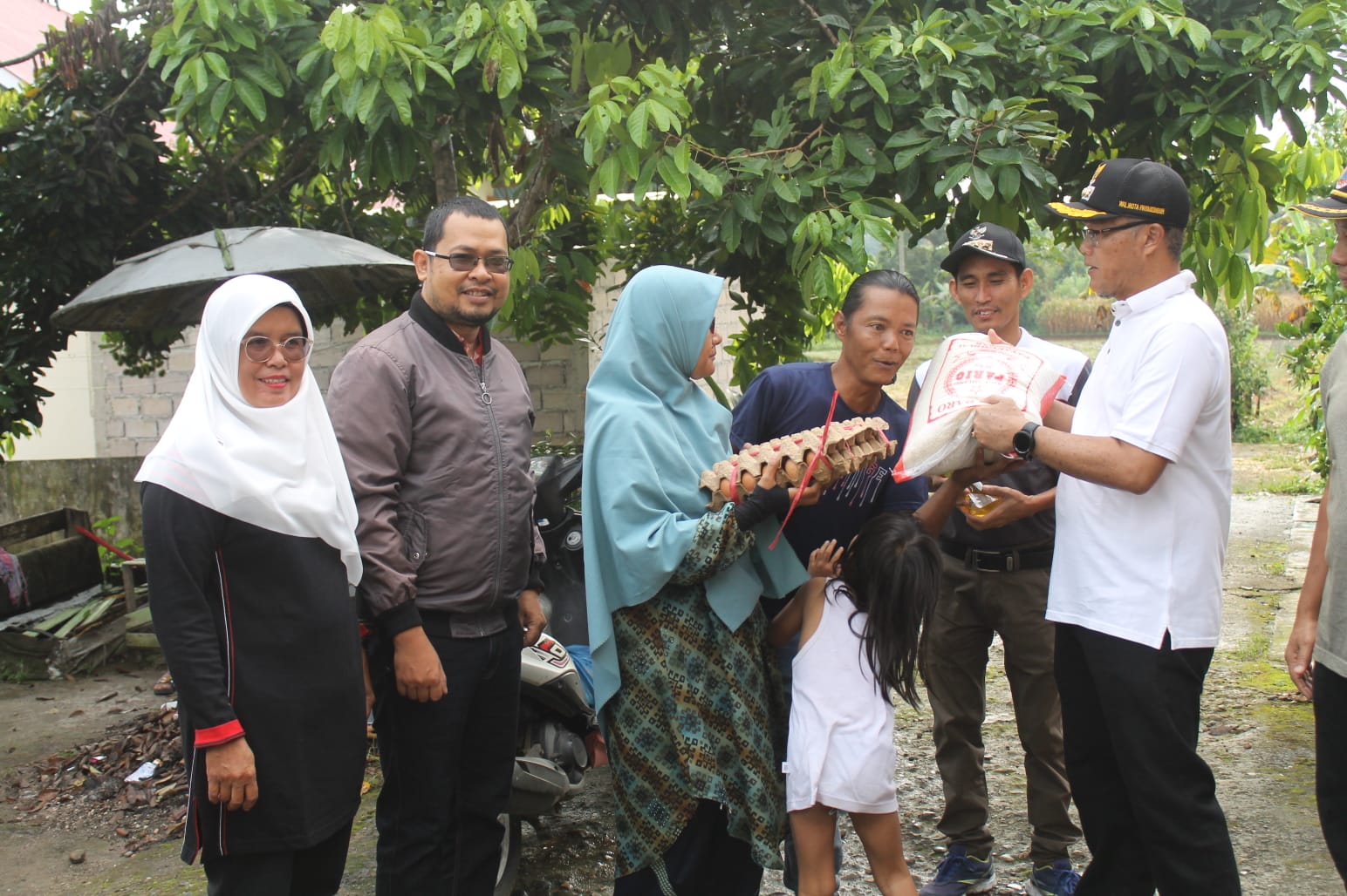 Wako Rida Ananda turut didampingi oleh Camat Payakumbuh Timur Hepy dan Lurah setempat menyerahkan bantuan sosial berupa sembako kepada Syafrinal dan keluarga.