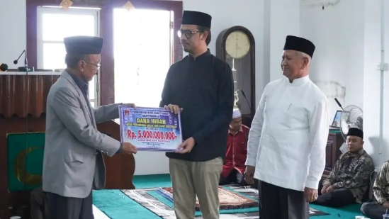 Wako Serahkan Dana Hibah Rp5 M Untuk Masjid Jami’ Tarok