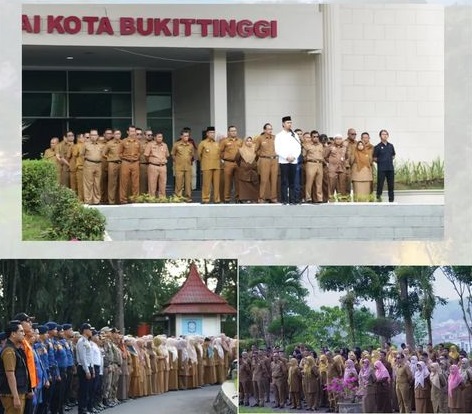Apel gabungan di ikuti oleh Pjs Sekda, Staf Ahli, Asisten, Kepala OPD, Kepala Sekolah dan seluruh ASN di Lingkungan Pemerintah Kota Bukittinggi.