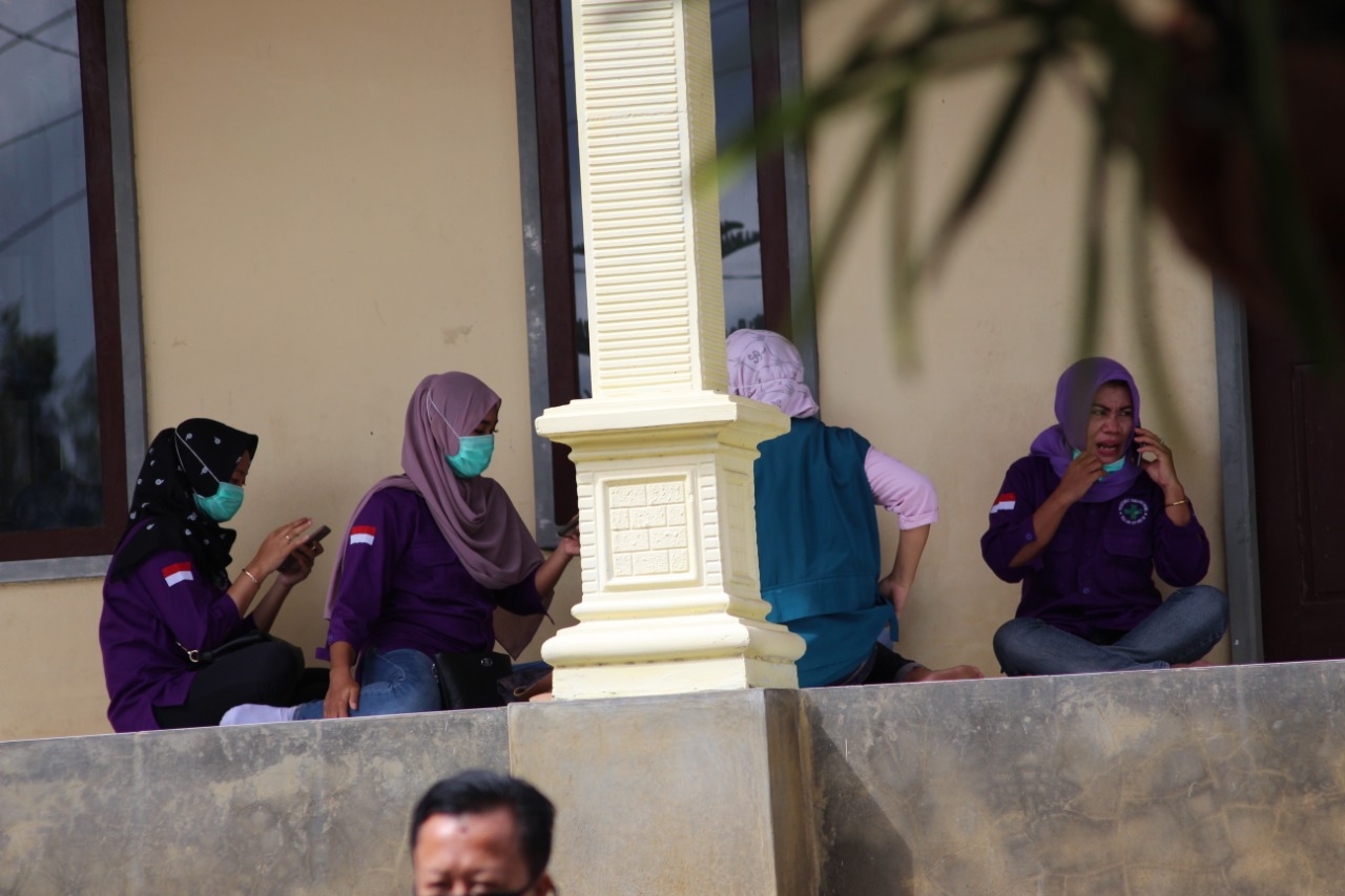 Seperti yang dilakukan wanita-wanita cantik dari tim kesehatan Kecamatan Tanggunggunung, Kabupaten Tulungagung ini, sambil menunggu datangnya tim di emperan masjid Desa Ngepoh.