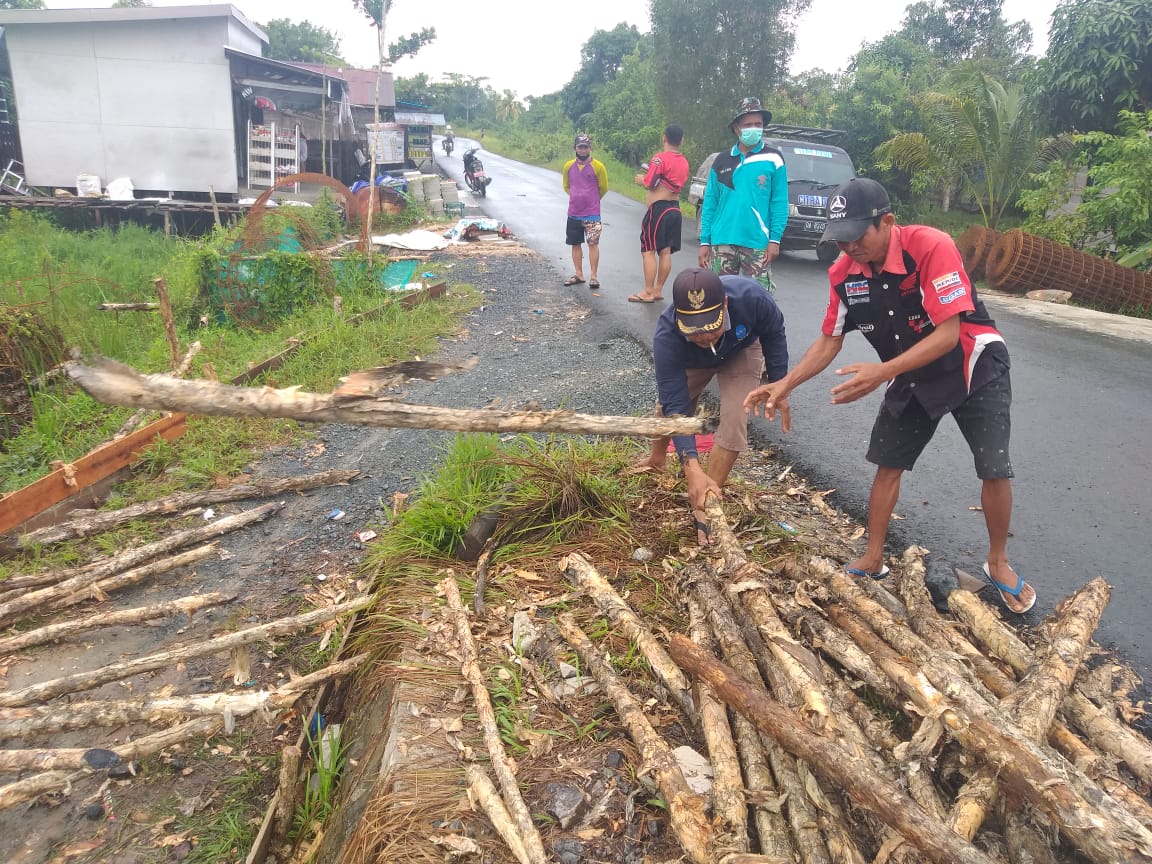 Kapuas,- Warga menyiapkan kayu galam untuk pendukung konstruksi pembangunan jembatan di Desa Saka Lagun, Kecamatan Pulau Petak, Kabupaten Kapuas oleh satgas TMMD Kodim 1011/KLK, Sabtu (20/03/2021). Pengumpulan kayu dilakukan untuk proses pembangunan jembatan tani yang kedua.