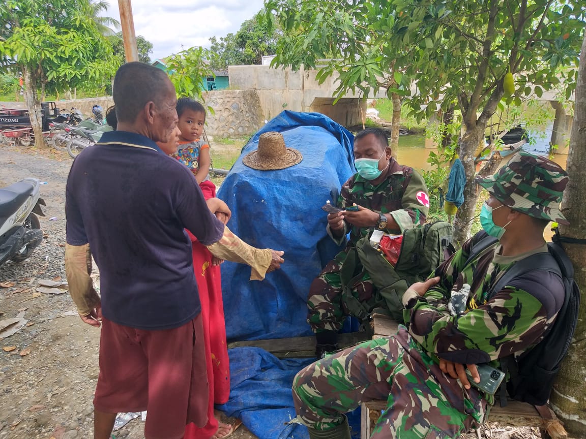 Kapuas,- Warga Desa Saka Lagun, Kecamatan Pulau Petak, Kebupaten Kapuas masih kesulitan di berbagai aspek, salah satunya akses pelayanan kesehatan. Namun Dengan hadirnya satgas TMMD sedikit membantu mereka, salah satunya adalah ibu Rabiatul yang memilih memeriksakan kesehatan ke Serma Narno yang merupakan anggota satgas yang bertugas memantau kesehatan satgas maupun warga, Senin (29/3/2021).
