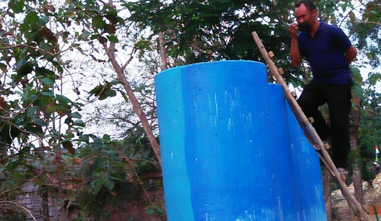 Di sisa waktu pelaksanaan TMMD, dengan dibantu warga, TNI Satgas juga berhasil membangun bak penampungan air dengan tujuan air bisa disuplai ke pemukiman warga. (Pendim Purwodadi)