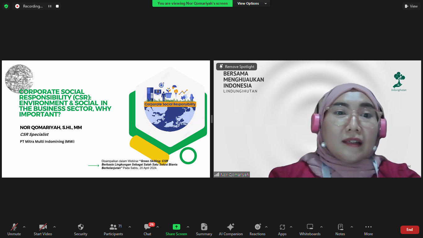 LindungiHutan adakan Webinar Green Skilling dengan topik Corporate Social Responsibility (CSR) diikuti 77 peserta pada 20 April 2024.