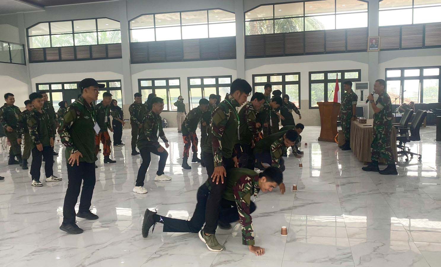 Kepala Seksi Teritorial Kasrem 044/Gapo Kolonel Arm Kusdi Yuli Suhanda mewakili Danrem 044/Gapo membuka acara tersebut mengatakan “Selama 2 hari ini saudara akan mendapatkan pembekalan bela negara diantaranya pancasila sebagai ideologi negara, pemantapan jiwa nasionalisme, pengenalan materi wanwil, penanggulangan dampak bencana serta materi – materi pengetahuan militer dasar seperti pengetahuan kesehatan lapangan, pengenalan drone, PBB dan navigasi darat”.