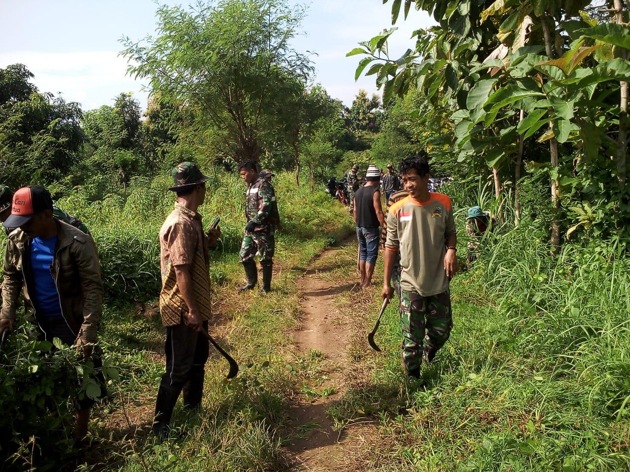 Bukan hanya warga setempat, personil Kodim 0823/Situbondi ikut terjun langsung dalam pengerjaan pembersihan jalan sekaligus membuka badan jalan tersebut. Kegiatan itu merupakan rangkaian Pra TNI Manunggal Membangun Desa (TMMD), untuk menyukseskan TMMD Reguler ke-107 TA 2020, yang berlokasi di Kecamatan Sumbermalang.