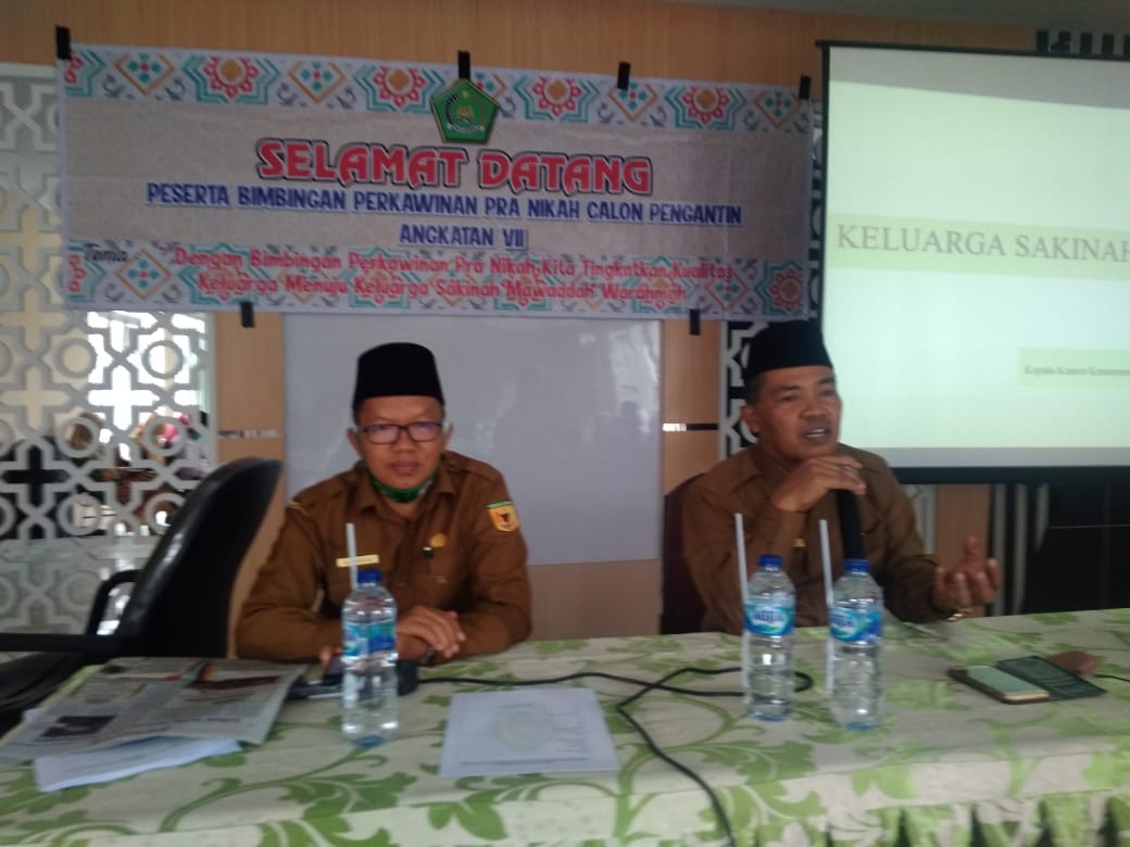 Sedangkan dengan narasumber yang menyampaikan materi selama berlangsungnya Bimbingan Perkawinan tersebut ada empat orang narasumber masing masing Drs. H. Syahrul Ka Kankemenag Tanah Datar dengan Judul materi Paparan Kebijakan Bimwin dan Mempersiapkan Perkawinan Yang Sakinah, H. Alinardius Kasi Bimas dengan Judul Materi Mempersiapkan Generasi Yang Berkualitas dan Memenuhi Kebutuhan Keluarga, Desi Asiswanti, S.Kep. dari Dinas Kesehatan dengan Judul Materi Menjaga Kesehatan Reproduksi, dan Raudhatul jannah Penyuluh Agama Tanah Datar dengsn judul materi Kontrak Belajar Pretest, Membangun Hubungan Dalam Keluarga dan Refleksi Postest dan Evaluasi. (M.Akmal)