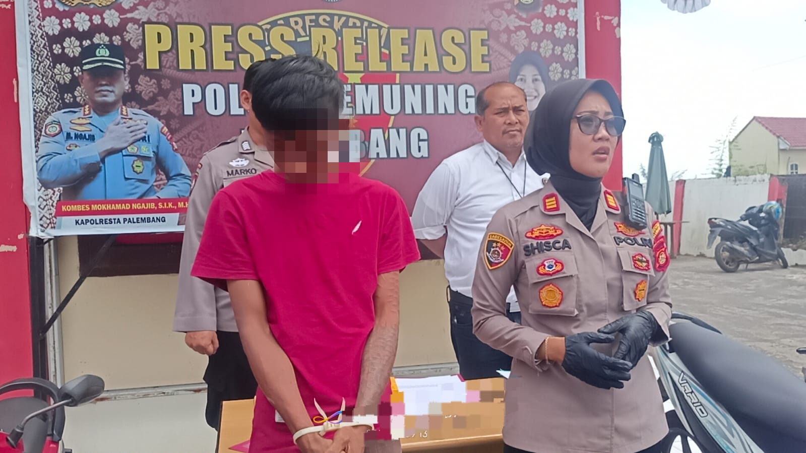 Pelaku bernama AP (31) yang beralamatkan di Jalan Rawajaya II kelurahan Pahlawan Kecamatan Kemuning Palembang.