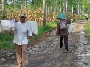 Senyum Semangat Warga Jatiroyom Saat Berangkat Kerja di lokasi TMMD