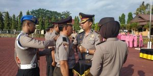 Kapolres Atam Berikan Penghargaan Kenaikan Pangkat Kepada 83 Personilnya.