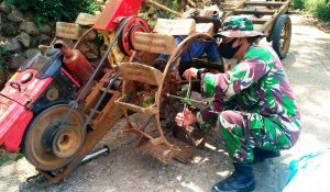 Sertu Hendro Bantu Warga Perbaiki Traktor