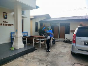 Personil Polsek Pangkalan Kuras Kembali Lakukan Penyemprotan Disinfektan