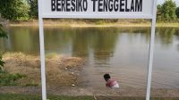 Sat Pol PP OKI Berikan Himbauan Untuk Tidak Mandi Di Kolam Dalam Area Pemda