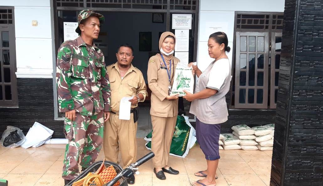 Di DUkuh Sutosari, pembagian beras tersebut dilakukan oleh salah seorang anggota Satgas TMMD, bersama Koordinator Penyuluh BPP (Balai Penyuluh Pertanian), Kecamatan Kesesi, Ibu Iswari Tanti. Ikutmendapingi, Sekdes Pantirejo, Roni Kustriharto, dan Poldes, Kisworo.