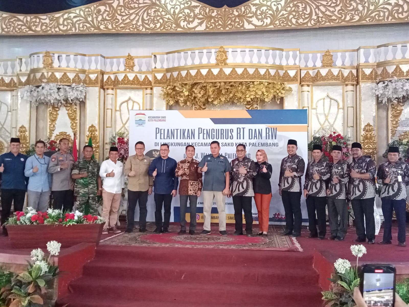Pj Walikota Palembang Drs .H.Ratu dewa menyampaikan bahwa hari ini menghadiri undangan pelantikan RT RW kecamatan Sako dan memberikan apresiasi karena jabatan RT RW menjadi ujung tombak dilapangan dalam rangka memberikan pelayan terbaik terhadap warga.