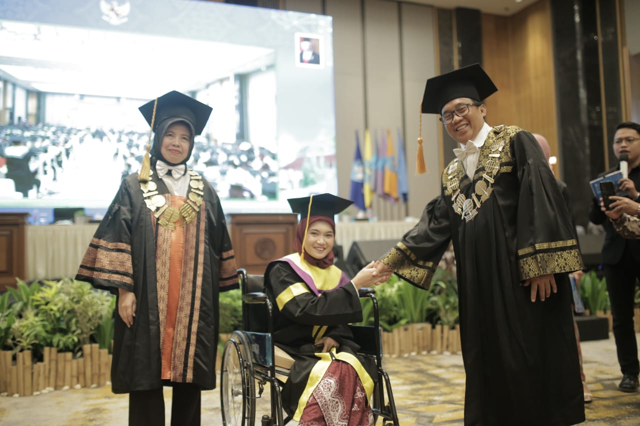 “Untuk wisuda ini sendiri sebagian sudah wisuda di UT pusat sebagian di UT Palembang. Pada wisuda UT ini ada beberapa mahasiswa disabilitas karena UT ini merupakan universitas yang inklusif. Jadi ia mampu memberikan akses kepada siapa pun yang Ingin mengenyam pendidikan tinggi termasuk bagi kaum disabilitas,” katanya.