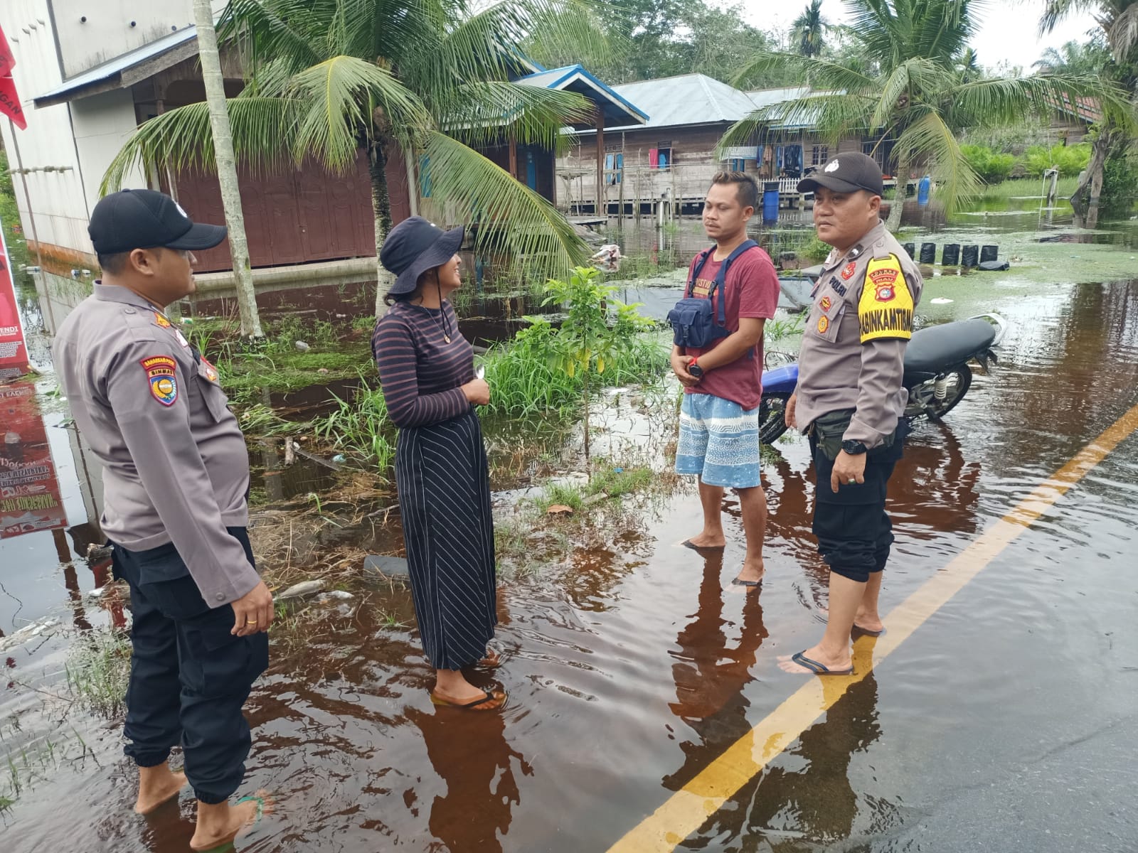 PELALAWAN, NEWSHANTER.COM-Kanit Binmas Polsek Teluk Meranti, Bripka Parlin Tampubolon, menyambangi warga yang terkena dampak luapan pasang surut air Sungai Kampar, Kamis (11/1/2024). Kegiatan ini dilakukan di pinggir Sungai Kampar, Kelurahan Teluk Meranti, Kecamatan Teluk Meranti, Kabupaten Pelalawan.