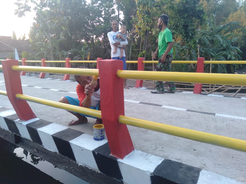 Adanya informasi bahwa penutupan TMMD akan dihadiri Bupati Bantul, warga berinisiatif untuk mengecat ulang jembatan dengan harapan jembatan kelihatan bagus.