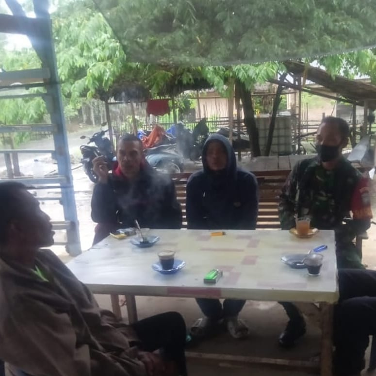 Tingginya curah hujan di wilayah binaan, Babinsa Koramil 04/Bendahara jajaran Kodim 0117/Aceh Tamiang Serda Tomi melakukan Komsos bersama warga Binaannya di Desa Alur Nunang Kecamatan Banda mulia, Kabupaten Aceh Tamiang. Minggu,(06/12/2020).