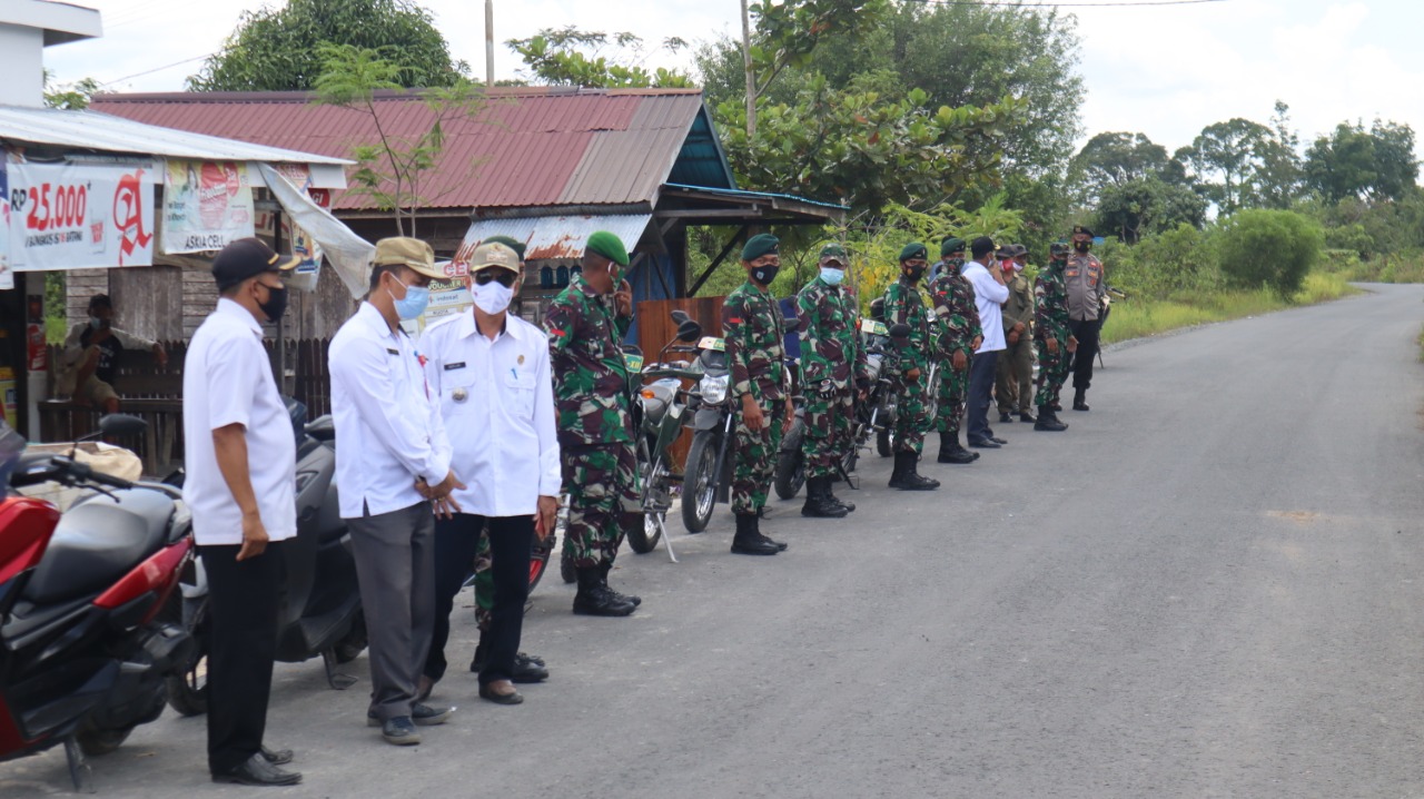 Para anggota kodim 1011/KLK beserta aparat Kabupaten dan desa mulai persiapan melakukan persiapan penyambutan. Mereka nampak berbaris rapi.