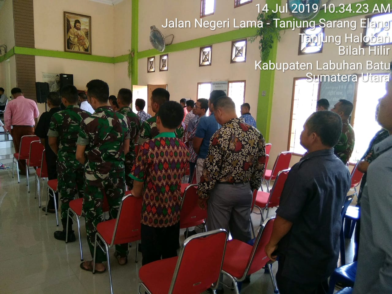 Seperti yang dilakukan personel Satgas TNI Manunggal Membangun Desa (TMMD) ke-105 Kodim 0209/LB yang beragama Nasrani tidak lupa untuk menjalankan ibadah di Gereja HKBP Simpang Tanjung Sarang Elang, Kec Panai Hulu, Kab Labuhan Batu, Sumut, Minggu (14/07/2019).