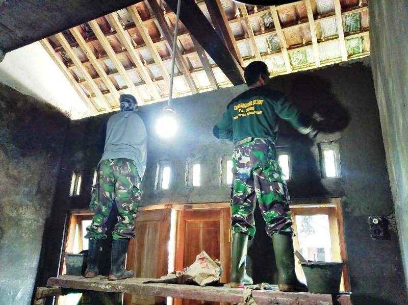 PEKALONGAN, Newshanter.com – Rumah Wiwik Sri Sugiarti (35), warga Dukuh Sutosari RT. 02 RW. 04, Desa Pantirejo, Kecamatan Kesesi, Kabupaten Pekalongan Jawa Tengah, adalah salah satu dari 10 unit rumah yang masih dikebut penyelesaian rehabnya oleh anggota Satgas TMMD Reguler 107 Kodim 0710 Pekalongan.