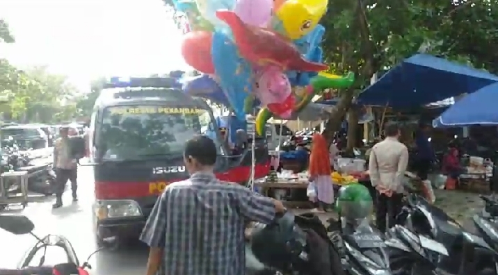 ” Pesan dan himbauan tersebut dilakukan dengan menggunakan pengeras suara (TOA) yang disampaikan kepada pengguna jalan, pedagang dan pengunjung pasar “, sebutnya.