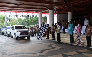 Kapolda Aceh Bersama Forkopimda Lepas Rombongan Gerakan Masker Aceh Ke Seluruh Kabupaten.