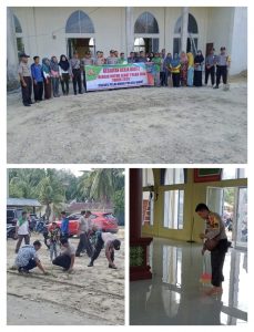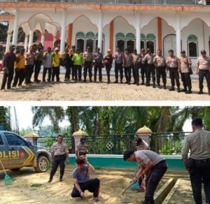 Kerja Bhakti Bersih Polda Riau Tahun 2020, Polsek Bunut Pusatkan Goro di Masjid Almakmur Sungai Buluh