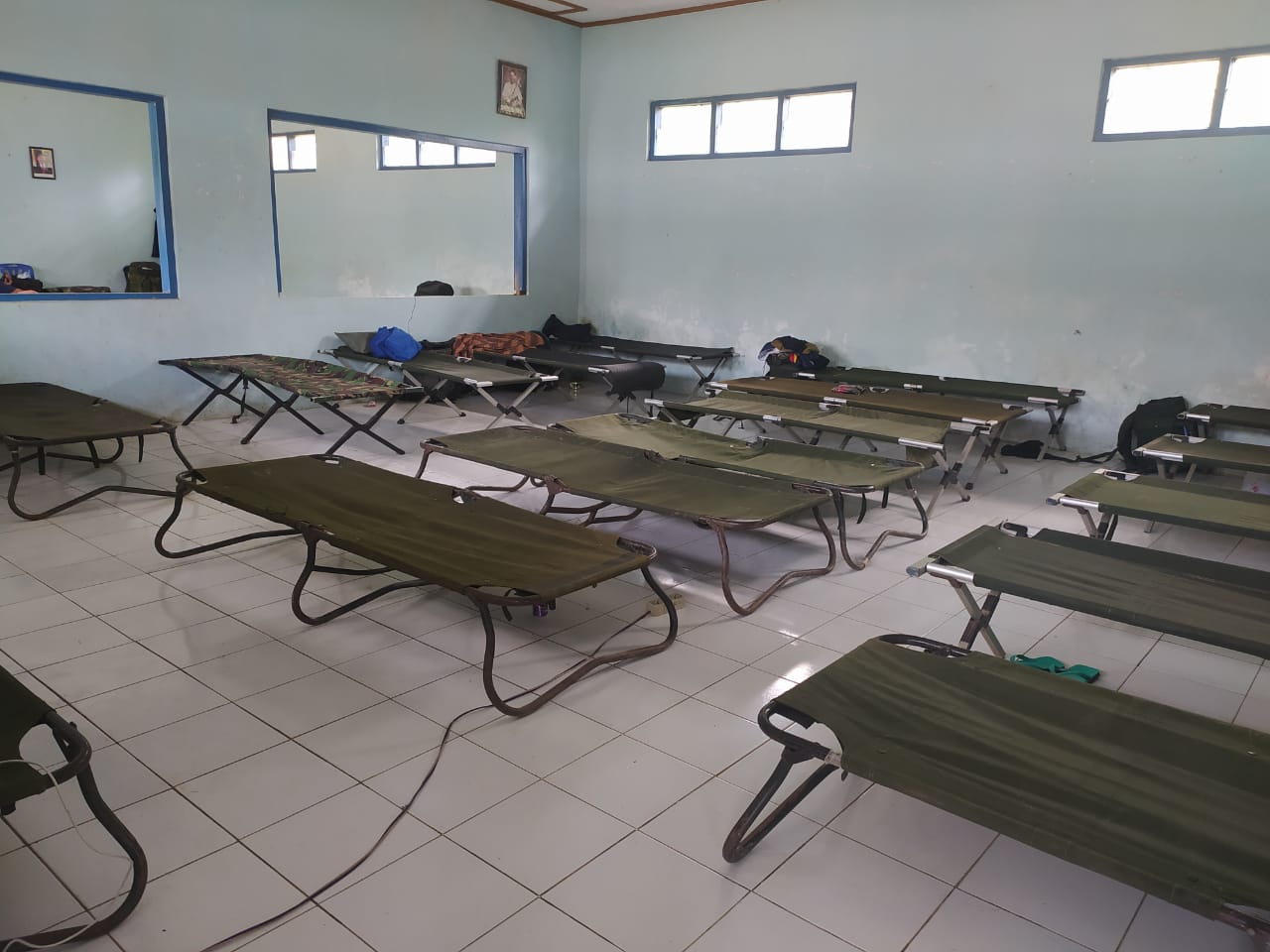 Di tempat itulah, di sebuah ruangan tanpa sekat, berjejer puluhan springbed ala Tentara tempat para prajurit istirahat malam setelah seharian bekerja di sejumlah sasaran fisik TMMD.