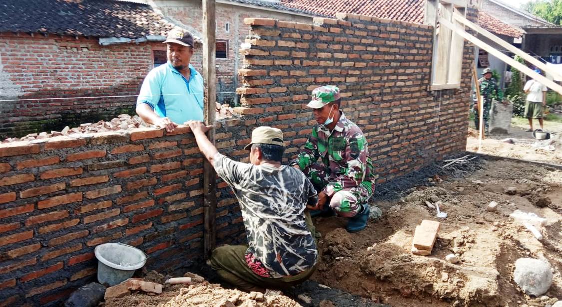 NewsHanter.Com,Pekalongan – Tanpa mengenal lelah, sejumlah anggota Satgas TMMD Reguler ke-107 Kodim Pekalongan, terus menyusun bata demi bata dipadu dengan adonan semen campur pasir, membuat rumah milik Sumiati, di Dukuh Sutosari RT 02/ RW 04, Desa Pantirejo mulai kelihatan bentuknya.