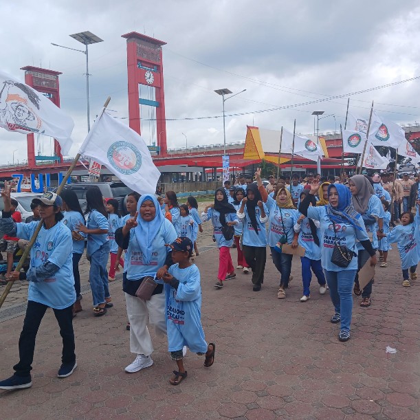 Palembang, newshanter.com – Beri dukungan kepada Prabowo-Gibran sebagai presiden dan wakil presiden. Ratusan anggota yang tergabung dalam Pedagang Pejuang Indonesia Raya (Papera) dan Tani Merdeka melakukan aksi longmarch.