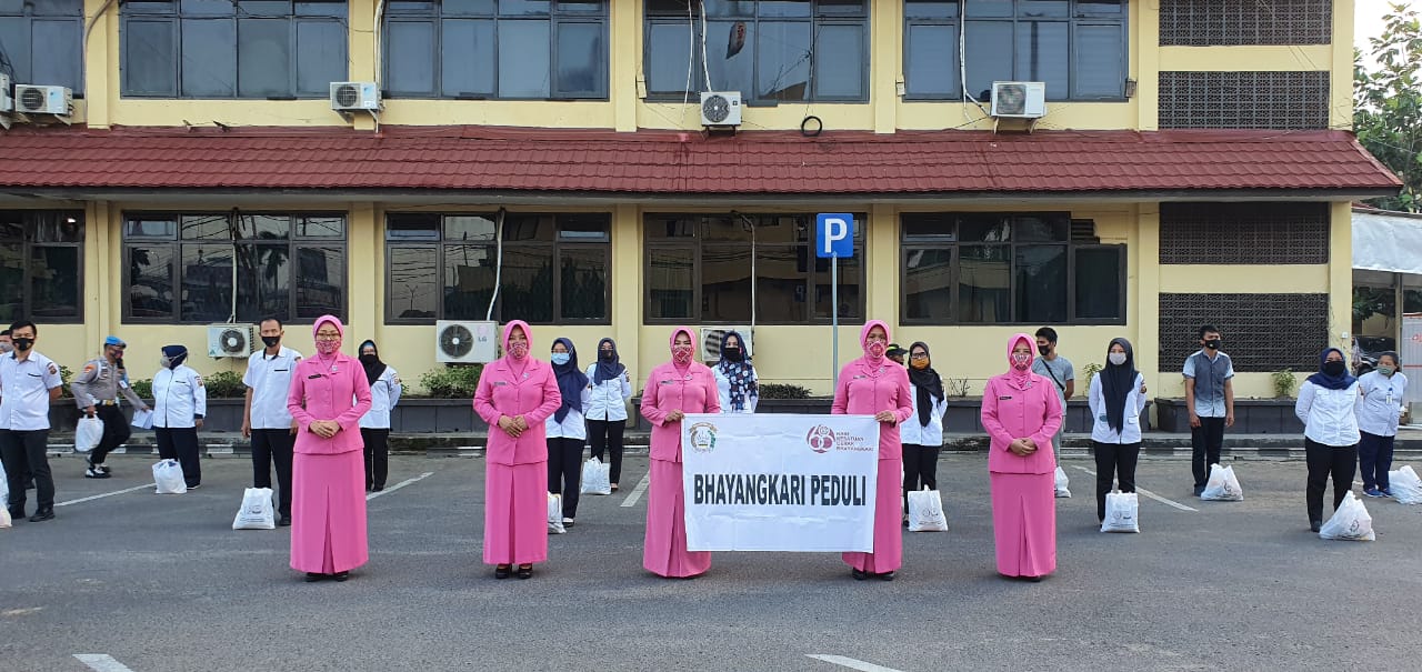 Palembang,newshanter.com – Ketua Bhayangkari Daerah Sumatera Selatan Ny. Nera Eko Indra Heri beserta Wakil Ketua Bhayangkari Ny. Diana Rudi Setiawan dan Pengurus Daerah Bhayangkari Sumatera Selatan mengadakan Bhakti Sosial “Bhayangkari Peduli” dalam rangka Hari Kesatuan Gerak Bhayangkari ke-68 kepada Pekerja Harian Lepas (PHL} Polda Sumatera Selatan dengan membagikan sebanyak 250 paket Sembako bertempat di Lapangan Upacara Polda Sumatera Selatan ,Senin (31/08/ 2020).