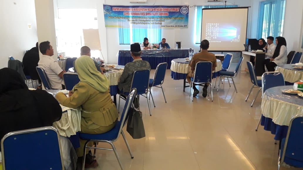 BNNK Aceh Tamiang kembali adakan Rapat Koordinasi Kabupaten Kota, dengan Dinas terkait dengan tema, Peningkatan Layanan Rehabilitasi dan Penjaringan Bagi Pencandu atau Penyalaguna, dengan Sil (Skrining Intervensi Lapangan), acara tersebut diadakan di Hotel Grand Arya, Kecamatan Karang Baru, Kabupaten Aceh Tamiang, Senin (28/10/19).