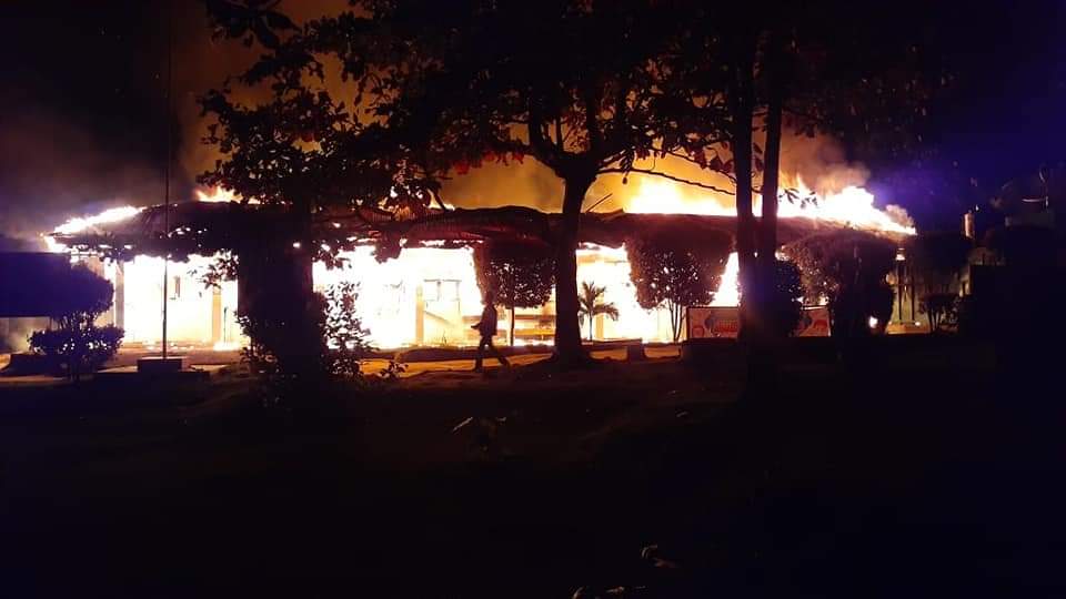 Akibatnya, tiga ruangan habis terbakar terdiri dari kantor, perpustakaan dan satu ruang belajar.