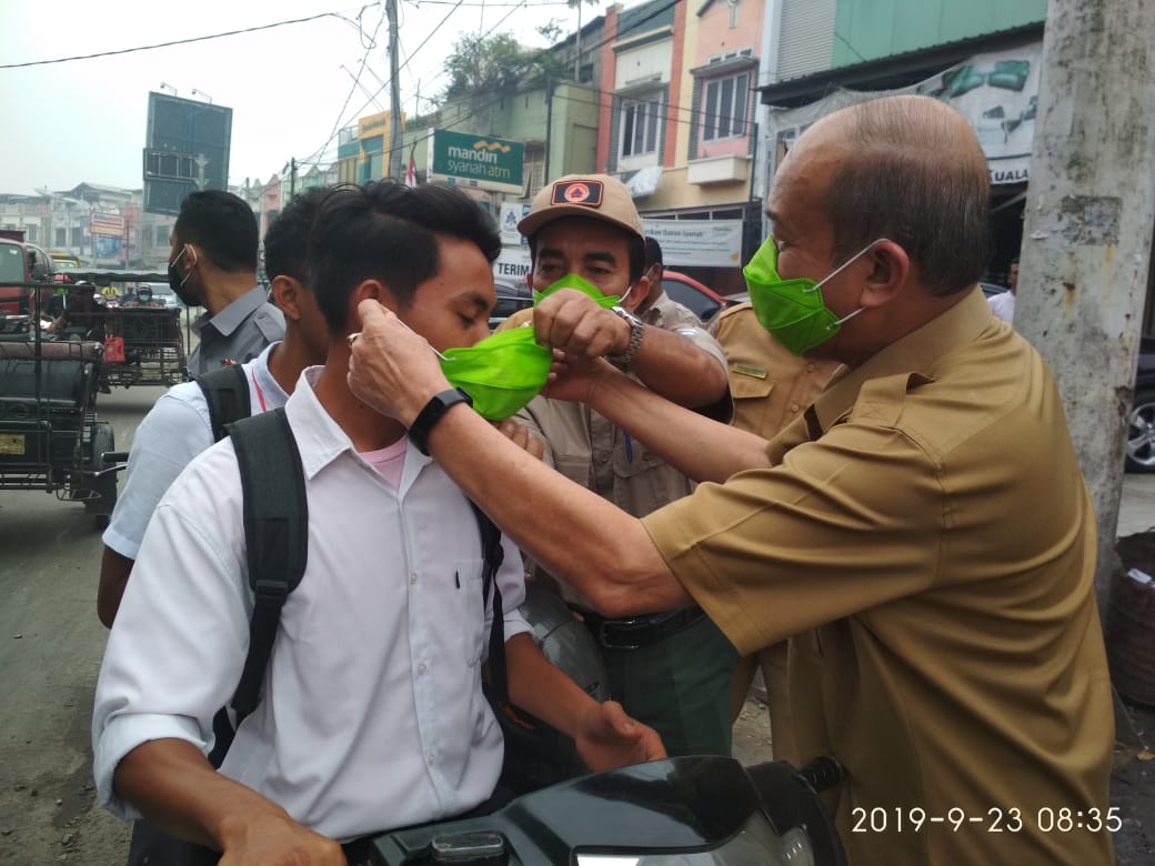 Kepala BPBD, Syahri, yang mendampingi Bupati mengatakan, pihaknya membagikan 1500 lembar masker kepada masyarakat. BPBD, terangnya, menargetkan siswa/pelajar sebagai sasaran pemberian masker. Meski demikian, pengguna jalan yang melintas di titik pembagian juga turut diberikan.