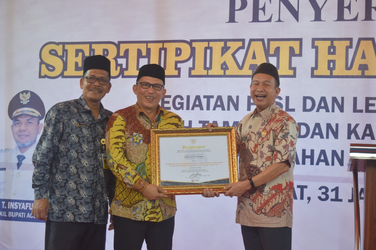 Dalam kegiatan tersebut, Bupati bersama Kapolres Aceh Tamiang, Kasdim 0117, Serta Kapolres Langsa juga turut menerima sertifikat tanah aset Pemkab dan masing-masing institusi tersebut, yang diserahkan oleh Kakanwil BPN Aceh. Bupati juga menerima penghargaan dari Menteri Agraria dan Tata Ruang atas penilaian kinerja program penataan ruang dengan predikat “Baik”.