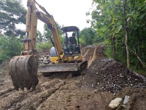 Excavator Masih Terus Meratakan Tanah Jalan Makadam Jatiroyom-Parunggalih