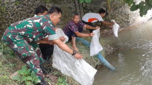 Gandeng Dinas Perikanan Satgas TMMD Jatiroyom Lepas 20 ribu Ikan di Kaliwadas