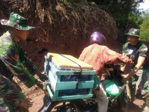 AKSI SPONTAN SATGAS TMMD BANTU PEDAGANG IKAN LINTASI JALAN LICIN