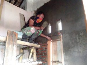 TNI Handal Tukang Batu, Terus Kebut Rehab Rumah Bu Wiwik