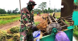 SIbuk Kerja TMMD, Sempatkan Bantu Ngedos Padi Milik Warga
