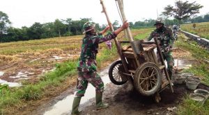 Menjadi Penarik Gerobak Usang, Terus Dilakoni Satgas TMMD Ini